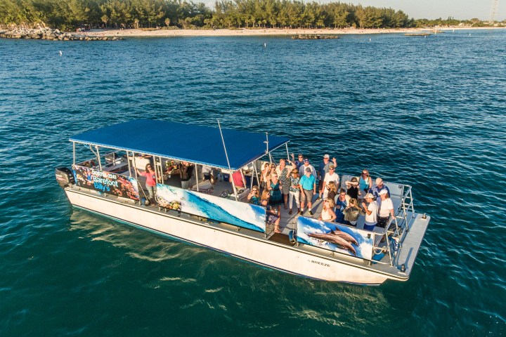 Board the Seabreeze, our 45-foot Corinthian power catamaran, designed for comfort with ample shaded seating. As we glide through the calm, crystal-clear waters, our friendly crew will share intriguing facts about Key West’s history and its unique marine ecosystem. You’ll have plenty of time to ask questions and soak up the tranquil atmosphere.